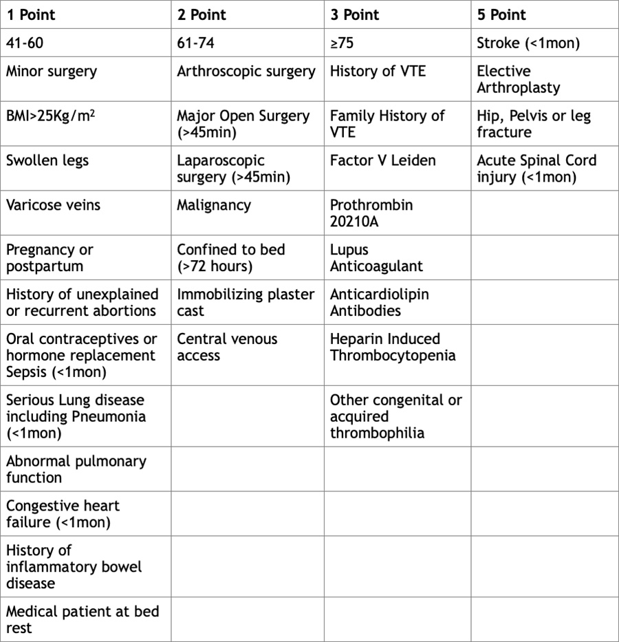 One study identified the following four risk factors as being highly predictive of VTE among hospitalized medical patients, these four-element risk assessment model, was accurate at identifying patients at risk of developing VTE within 90 days and was more effective than the Kucher Score, a risk assessment score.9