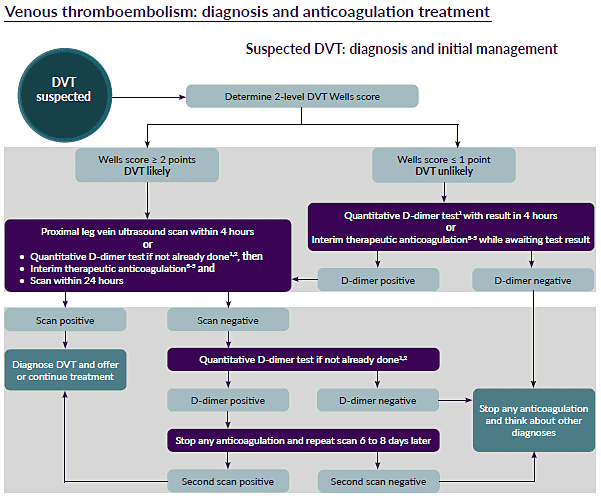 - [Guideline] Venous thromboembolism: diagnosis and anticoagulation treatment. NICE March 2020. Available at: https://www.nice.org.uk/guidance/ng158/resources/visual-summary-pdf-8709091453 Accessed on July 24, 2020
